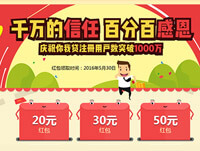 截至16年05月29日,你我贷平台注册用户已突破1,000万。成立5年来投资人通过平台服务累计赚取近30亿的收益,得到了越来越多的用户认可和信任。 |
